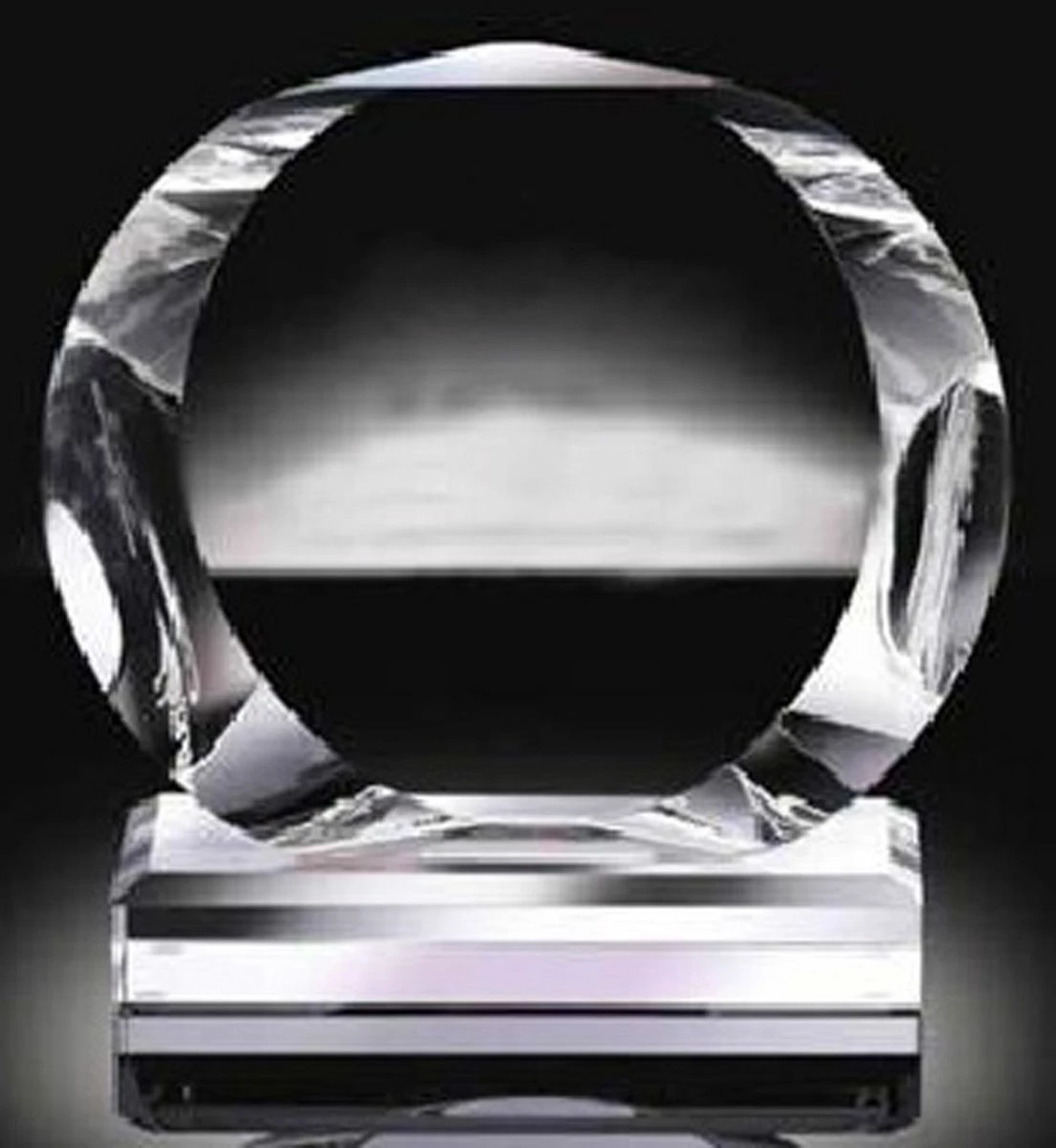 The thick glass is clear and has been made special with its beveled edges. Personalization is possible. Ships in a box with satin lining.