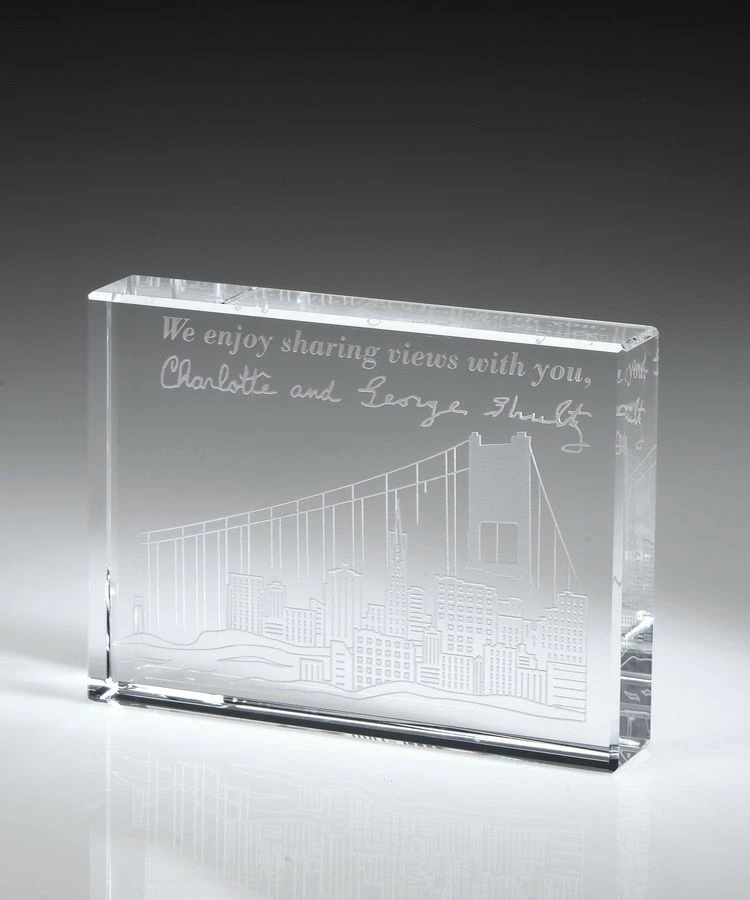 Flat Edge Crystal Paperweight. Made from solid crystal, the smooth flat base is clear and leaves plenty of room for personalization. You can even inscribe an inspiring quote.