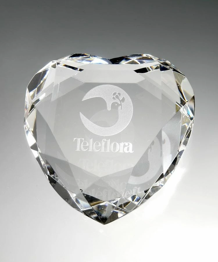 Gorgeous, isn’t it? This heart paperweight is made of crystal and has faceted sides. You can customize this crystal heart paperweight.