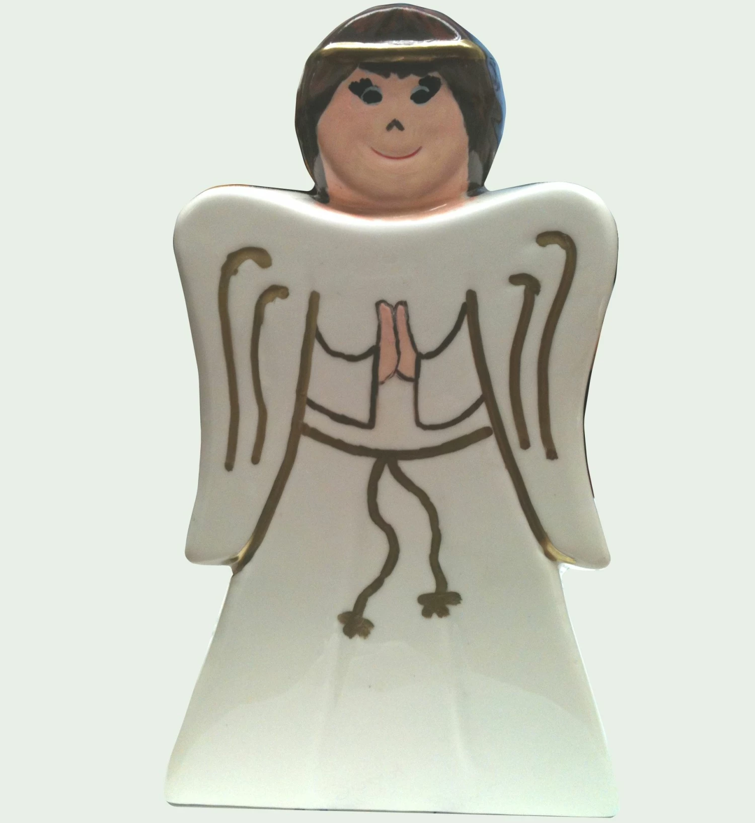 Our artist took the plain white ceramic angel bank and turned it into Our Little Angel. This bank could be given as a gift to so many people – from young to old. Thankfully, there are angels amongst us that do such wonderful deeds. A newborn baby could be Our Little Angel Bank as she or he enters our world. Our Little Angel could be a spouse that has helped us through hard times. Our Little Angel could be our Mom or Dad.