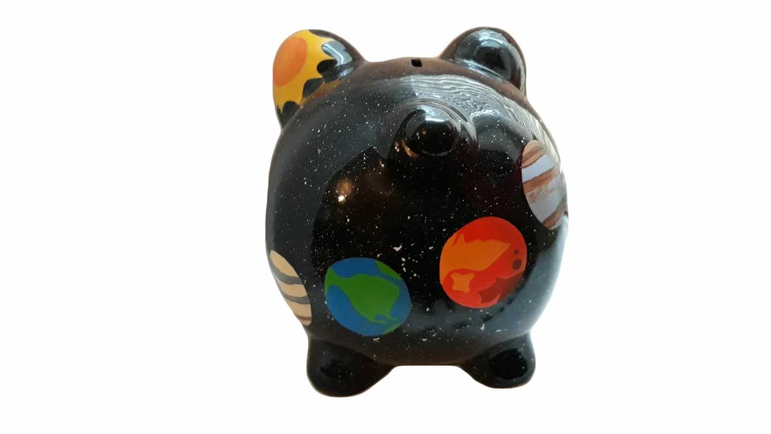 Our artist has a young son who is enthralled with space. She created this fascinating piggy bank with him in mind.