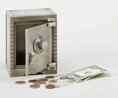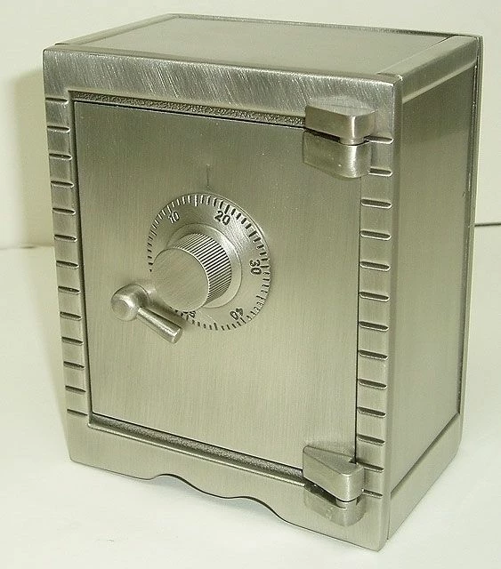 This vault bank has a pewter finish and is a very sturdy way to save your money.