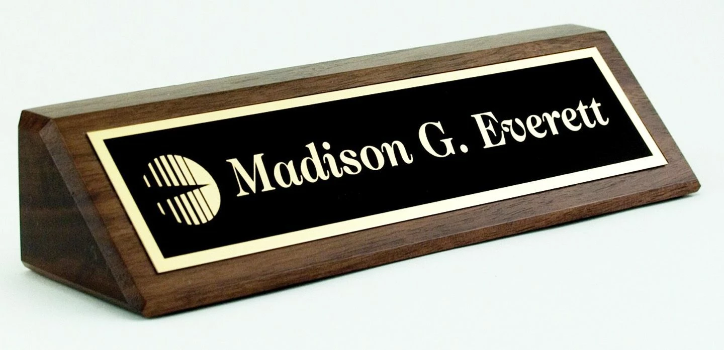 Easy to read the name on this name plate. Made of solid walnut, this desk name plate is 10 inches long.